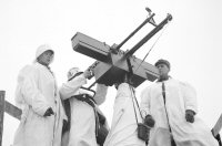 cone-shaped mount (covered with white cloth for camoflage) and sights. (SA-kuva photo archive, photo number a_109).