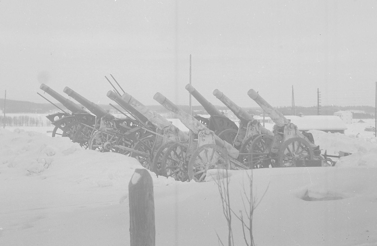 PICTURE: Photograph showing number of artillery pieces captured by Finnish White Army in Battle of Viipuri