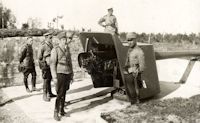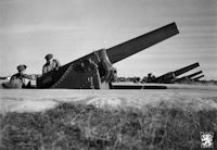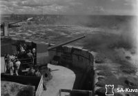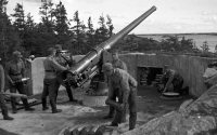 PICTURE: 120/41 A coastal gun with its gun crew. Photo taken by Corporal Rolf Grandell in Granholm Coastal Fort
