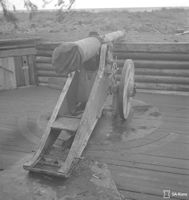 in August of 1942. Building visible on the backgroud is fire control tower of the coastal artillery battery. Photographer