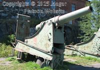 This was 120-mm (4.7 inch) naval cannon manufactured by Elswick Ordnance Company (EOC), which was armaments manufacturing branch of W.G. Armstrong & Company. While these guns had originally been intended for war ships, in Russia (and Finland) they were mostly used by coastal artillery. EOC manufactured several models of this gun, the first of which was introduced already in 1880's. British Royal Navy was using them still during World War 1 and they remained in use of British coastal artillery until late 1950's. Japan acquired first these guns from EOC for Imperial Navy and later also a manufacturing license for them. Around year 1900 Italian warship manufacturer Gio. Ansaldo & C. also bought number of guns from EOC for its cruisers. Besides Britain and Japan a small number of guns were also manufactured in Australia. Some guns also saw use with Republican Army in Spanish Civil War (1936 - 1939), while the British used some as field artillery pieces during 2nd Boer War (1899 - 1902). During World War 1 British and Australians were again using them as field artillery and some were even used as anti-aircraft guns for defending London. Also during World War 1 Russia was building Peter the Great's Naval Fortress in Finland and due to shortage of suitable coastal guns, bought large number of these guns from Japan. Majority of the guns acquired to Russia were Japanese manufactured, but they included also at least some manufactured by EOC. While later version of this had longer gun barrels, all the Russian-acquired and subsequently Finnish-used guns were with L/40 gun barrels.