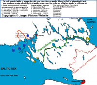 PICTURE: Map showing locations of coastal artillery batteries supporting Mannerheim-line and coastal artillery