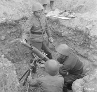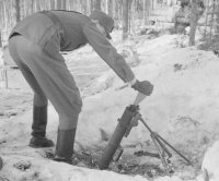 During Winter War (November 1939 - March 1940) 81-mm mortars formed the grand majority of mortars in use of Finnish Armed Forces. One could say that for all practical purposes for Winter War 81-mm mortar was the standard mortar of Finnish Army. When Winter War broke in November of 1939 Finnish Army had only 292 81-mm mortars, but due to mortars acquired abroad and confiscated from Tampella their number reached 691 by end of the war. During this war 81-mm mortars played very important role. With the acute shortage of field artillery and field artillery ammunition that Finnish Army suffered during Winter War 81-mm mortars often were the only heavy support weapons available and because of this often had to fill the role, which is was usually taken care by field artillery. In this use 81-mm mortar proved surprisingly effective against attacking infantry, providing covering fire to Finnish attacks and even knocking out Soviet tanks with them was not very uncommon. However field artillery they were not - they lacked the range and their ammunition proved less than effective against bunkers and dugouts build from ground and wood. Sensitive fuses made the ammunition reasonably effective even in deep snow, but still left something to desire effectiveness-wise. The heavy use and varied duties of 81-mm mortars resulted to quite high loss rate - 25 of 81-mm mortars were lost during Winter War. By the time Continuation War (June 1941 - September 1944) started in June of 1941 the number of 81-mm mortars had reached total of 911 weapons. From that on their number started to decline. During Continuation War the losses continued accumulating and since Tampella had basically stopped manufacturing 81-mm mortars by that time, these losses could not be easily replaced. By 1st of January 1944 number of 81-mm mortars had dropped to just 812. Issuing captured Soviet 82-mm mortars offered temporary relief, but did not solve the underlying problem. 1st of September 1944 Finnish military tried solving the issue by placing Tampella order of 250 new 81 Krh/38 (81 mm mortar model 1938) mortars, but this proved too late to have any major effect during the war, which soon ended. Another major project concerning 81-mm mortars during Continuation War was 81 Krh/42 (81 mm mortar model 1942), which had a shorter barrel and weight much less than other 81-mm mortars in Finnish inventory - making it notably more mobile, but not without reducing maximum range. If Continuation War had continued later large part of 81-mm mortars used by Finnish military might have been modified to 81 Krh/42, but since the war ended when it did this mortar model did not get beyond prototype series manufactured for field tests.