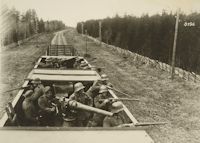 Besides the main three north - south railways also the railways of southern Finland saw quite a bit of battles with armoured trains during April of 1918. That month two German units, whose arrival resulted from Finnish Senate requesting assistance from Germany earlier, landed to Finnish south coast. While this request for help pissed off General Mannerheim and considerably complicated political relations between Finland and western nations still fighting World War 1 against Germany the units sent by Germany to Finland also proved valuable assistance to White Army. Larger of these two German units was Ostsee Division (Baltic Sea Division) of about 9,500 men strong, which was led by Major-General von Goltz and landed to Hanko at 3rd of April 1918. Another smaller German unit that took part in Finnish Civil War was Brandenstein Detachment / Brigade named after its commanding officer Colonel Otto von Brandenstein. This unit had at most some 2,500 men and landed to Loviisa four days later. The Finnish Reds were unprepared for these landings, which combined with their weak leadership, made their chanced for resisting the Germans very difficult. When in came to armoured trains of the Reds they did not prove very effective against the Germans, likely because of their better discipline, training and higher level of experience. In these battles Red armoured trains adopted the role of rear guard, which protected the retreat of their infantry, when they tried to delay German advance.