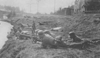 Outside the city the Reds had armoured train and concentration of troops (which had never seen frontline service) from local Red Guard defending Tikkurila railway-station. Red Guards fighting in Tikkurila local ones, they had combat experience and had been equipped with non-standard hunting rifles. After the Germans succeeded capturing Tikkurila railway station the battle turned very one-sided. When the Reds twice attempted counter-attacking to the station the Germans basically mowed down the inexperienced Reds with their machine guns and mine throwers. The Reds lost in total some 70 - 100 men dead and another taken as prisoners, while the Germans lost only two men in the battle. The armoured train and some other trains however succeeded to escape and rolled from the battleground towards north. Capturing of Tikkurila railway station cut railway connection of the Reds to Helsinki.