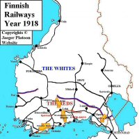 15th: Poorly armed unit of the Whites attacks Taavetti railway station (in Kouvola - Viipuri railway) because of rumoured storage of weapons in the station. Instead of weaponry storage they found armed and ready Reds in the railway station. Battle ensued and during it the Reds get also (Russian) armoured train for their support. Facing all this firepower the weakly armed Whites have to flee leaving even they own wounded behind in open terrain.