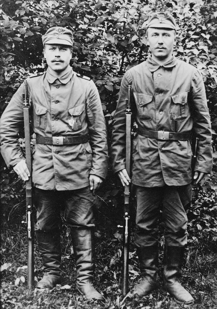 PICTURE: Uniforms these two soldiers are wearing appear to be summer uniforms of Finnish White Army.