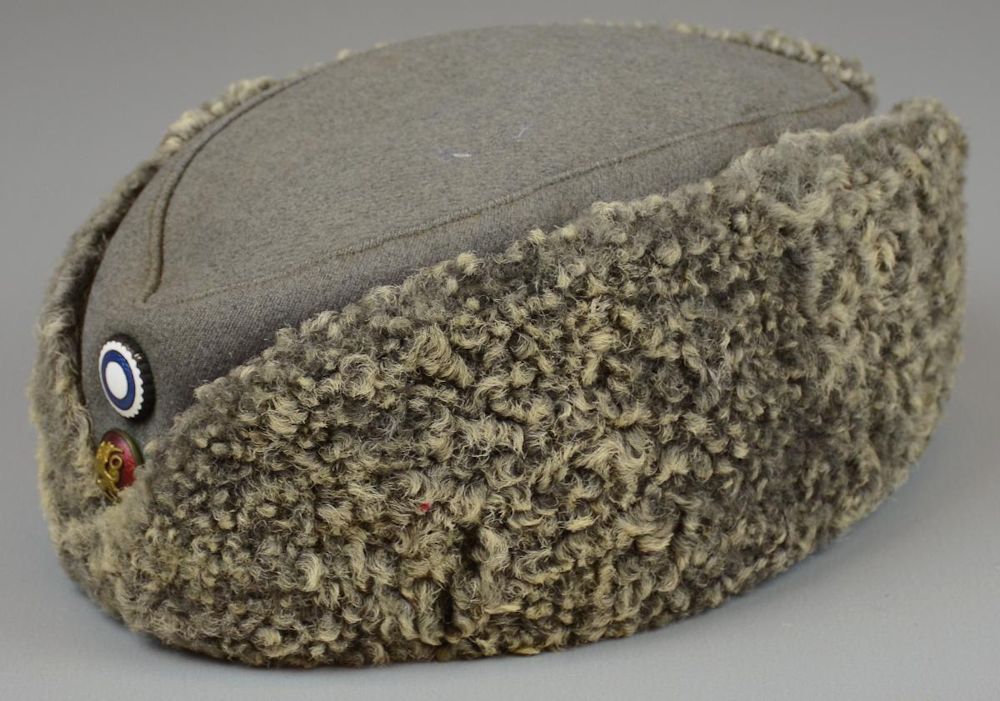 PICTURE: Fur hat m/22 with cockades that were used with it by officers and senior NCO ranks. Sides of the hat can be folded
