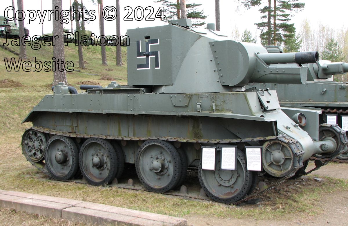 Finnish use: Total 18 vehicles manufactured in 1943 -1944 by installing British 4.5-inch howitzer in a new larger turret on top of captured BT-7 tank chassis. The resulting vehicle was poorly suited as assault gun, but could have been more successful as self-propelled artillery piece. After heavy losses suffered in battle of Viipuri in June of 1944, these vehicles were declared obsolete.