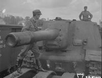 visible behind the BT-42 is captured Soviet JSU 152 (ISU-152) assault gun "1212". (Photo taken in