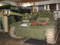 The second captured JSU 152 assault gun was marked with Soviet tactical number 1212 and had earlier unrepaired battle damage – it had been shot through front hull under the gun mantle. This vehicle was found 230 meters from Portinhoikka crossroads on road leading to Juustila and had been immobilized by getting stuck on road bank. Also its right track was broken, which likely had caused the vehicle getting stuck on road bank. But this JSU 152 also still had crew well-armed and determined still inside the vehicle. 2nd Lieutenants Schrey and Hiltunen with group of soldiers "smoked out" the crew of this immobilized vehicle and shot them in resulting firefight. This assault gun was sent for repairs to Armor Centre (Panssarikeskus) in town of Varkaus. However it never got a chance to serve Finnish Army as an assault gun. At that time Finnish Army was lacking armored specialist vehicle designed for salvaging medium and heavy tanks from battlefield. Hence Ps. 745-1 was modified as such specialist salvage vehicle called JSU 152V by removing its weapons and equipping the vehicle with towing equipment. Repairs and modification work for this sole JSU 152V salvage vehicle Ps. 745-1 was completed in November of 1944. Only weapon originally intended for Ps. 745-1 was 20-mm Lahti L-39 antitank-rifle installed on top of the vehicle as anti-aircraft weapon, but final vehicle had also ball mount for DT-machinegun in its front hull in place of howitzer. In addition this salvage vehicle had its engine equipped with powerful muffler to reduce changes of enemy spotting the vehicle too soon. This salvage vehicle that remained in use of Finnish Army until year 1964, at which point it was transferred to museum use and returned to original form with re-installation of its 152-mm howitzer, which had been in storage all those years. Nowadays the vehicle is in Parola Tank Museum.