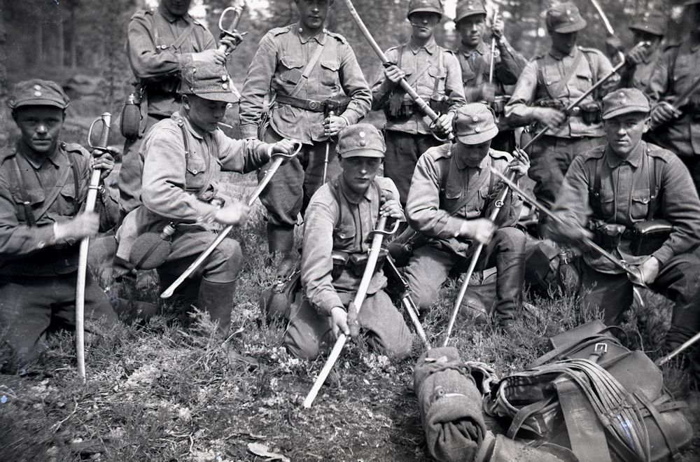 Finnish Army was born out of war. January 1918 Finland, which had declared independence less than seven weeks earlier, was plunged into Civil War. Finnish Socialists agitated and supplied by the Russian Bolsheviks created Red Guards, which now started their armed revolt against democratically elected non-socialist government. About the same time Finnish White Army supported by Germany started in Carelia and Pohjanmaa / Botnia regions disarming Russian garrisons, which still had huge number of armed Russian soldiers, most of which were really no longer taking orders from anyone. Disarming of the Russian garrisons allowed White Army both to secure areas acting as its base of operations and capture weapons desperately needed to cover its shortage of weapons. During the war Finnish White Army which started as local groups of volunteers (Civil Guards) developed into a proper army with ultimately about half of its troops being conscripts from the geographical area under its control. Once Civil War ended to victory of the White Army in May of 1918, this army developed into Finnish Armed Forces.