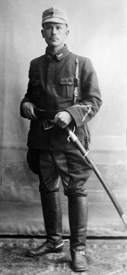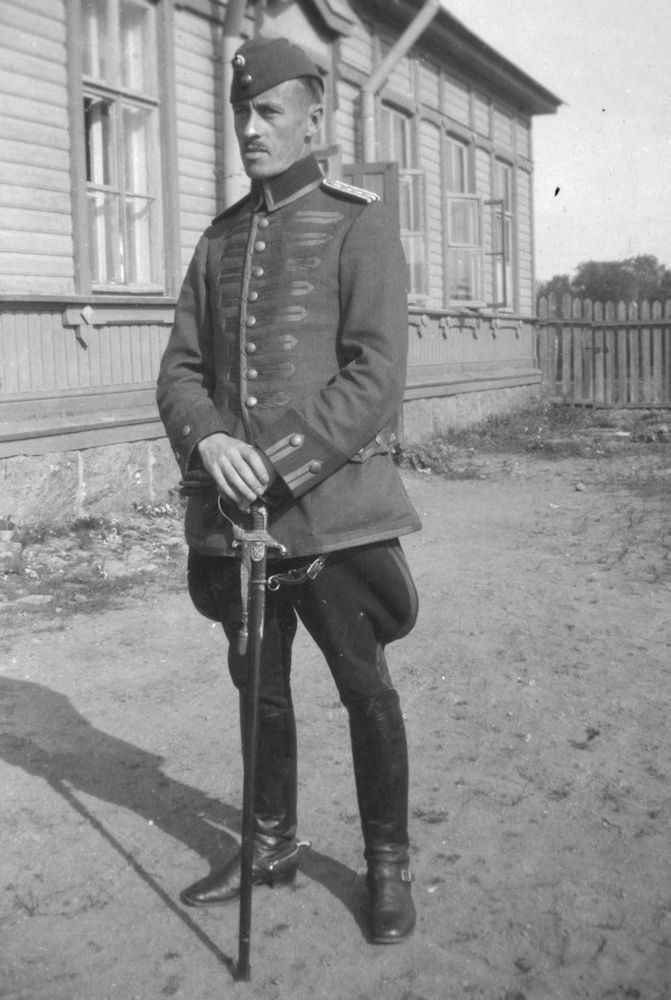 sword and lance, which is probably a cavalry lance captured from Russian Cossacks during Finnish Civil War. The uniform he is