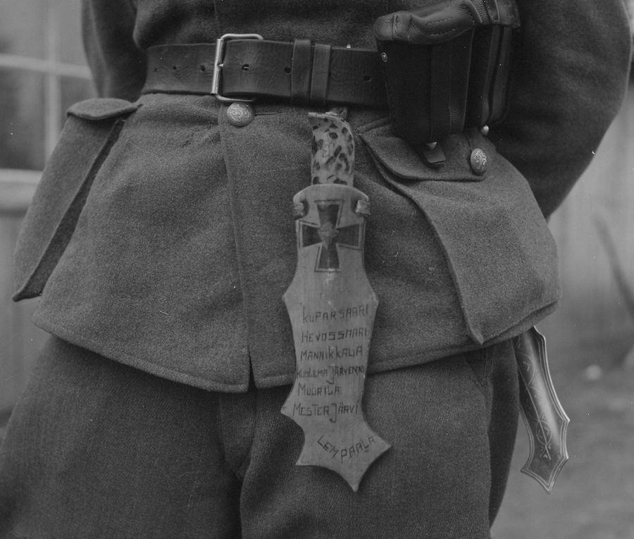 puukko-pistin m/19 dagger. He is wearing summer tunic m/32 or