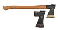 PICTURE: Billnäs 12 axe, which was the most common axe design used by Finnish military. Two Finnish manufacturers, Billnäs Bruk and Kellokoski both manufactured this axe design known for its versatility and the axe model remained in production from early 1900's to 1970's. Finnish industry manufactured axes in various sizes, while Billnäs 12 a medium size axe, below is axe head of Billnäs 1, which was about as large as the axes could get. CLICK THUMBNAIL TO SEE LARGER PIC (43 KB).