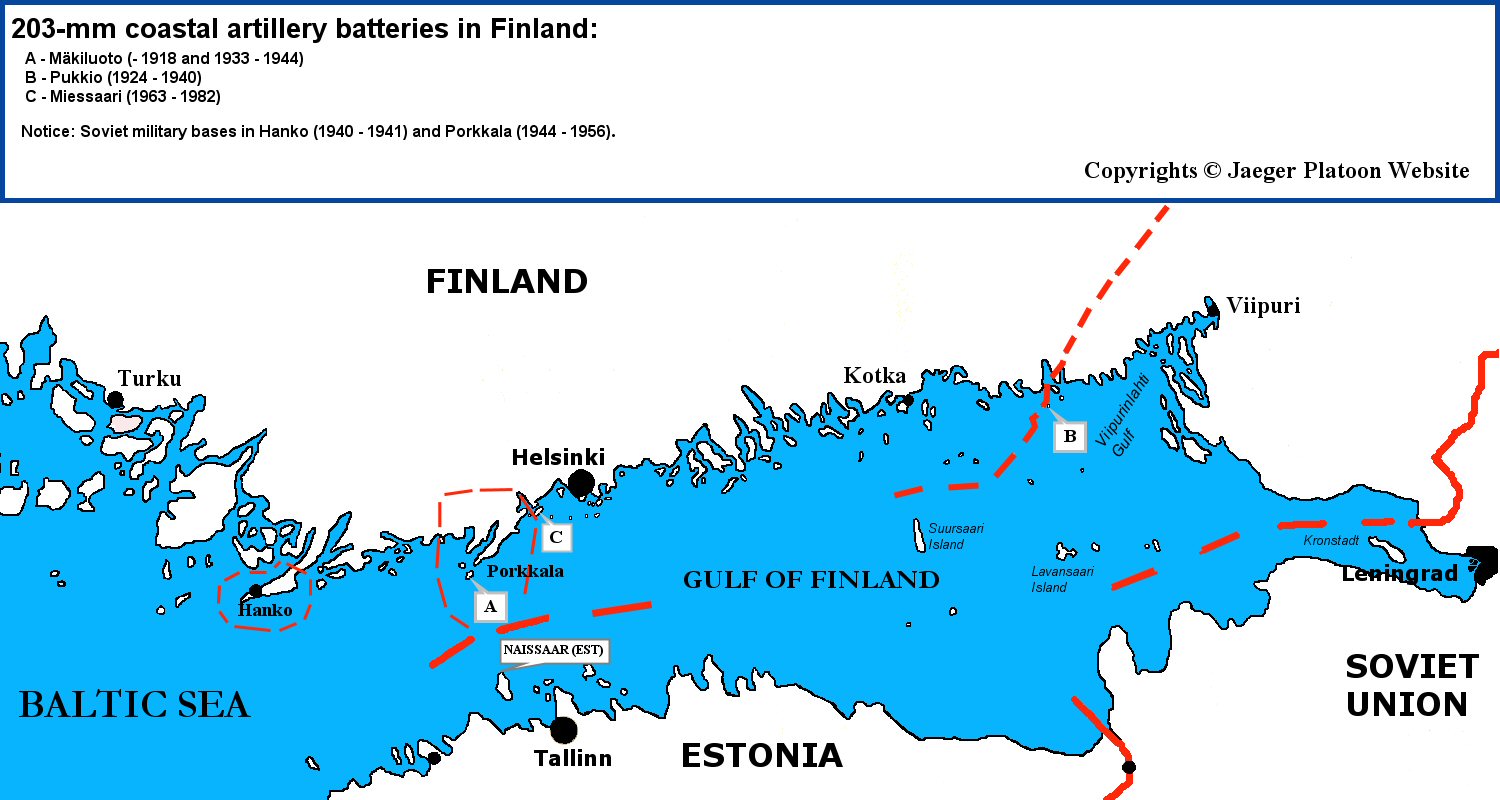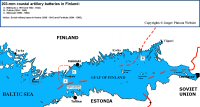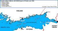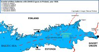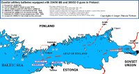 PICTURE: Map showing historical locations of 203-mm coastal artillery batteries in Finland . CLICK THUMBNAIL TO