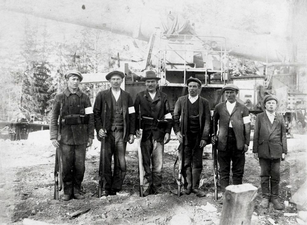 Finnish Army in year 1918. The Russians had tried destroying also guns of this battery, but one of its guns (likely the one in