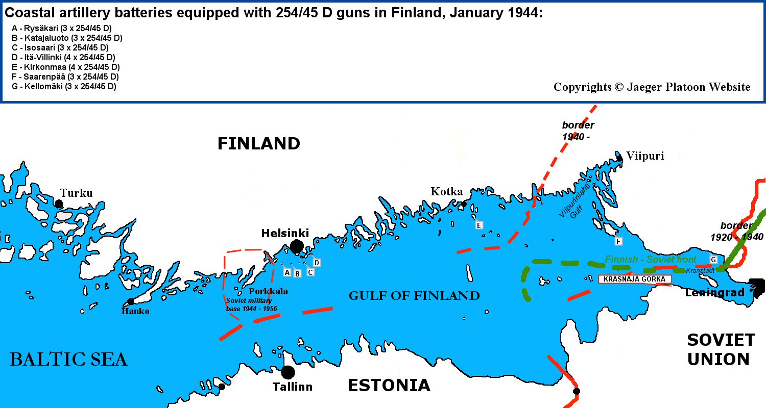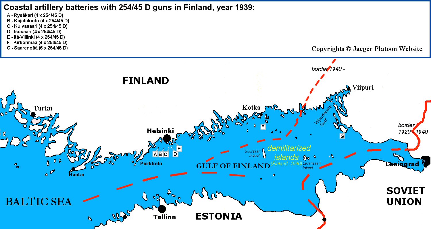 When studying for writing this page I made quite a surprising observation. The best known battles of Finnish coastal artillery seem to be the ones fought against largest warships of Soviet Baltic Sea Navy during Winter War. Yet this was not the most important contribution of coastal artillery to Finnish military capability during World War 2. In fact the numbers of shells that the coastal artillery fired towards ground targets outnumbered the number of shells fired against ships in truly large margin. Yet the important role that Finnish coastal artillery played in providing artillery support to land front seems to be at least internationally far less commonly known. Admitted much of the credit for providing this often vital artillery support goes to heavy coastal artillery batteries, also some of the super-heavy coastal artillery batteries played role of equal significance.