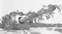 Ristiniemi was the only coastal fort to use its 305-mm coastal guns in battle during Winter War. When the war started in November of 1939, this coastal fort did not see much action early on, since frontline that had stopped in front of Mannerheim-line was well outside range of its guns and Soviet warships were busy with Saarenpää coastal fort until ice inhibited further naval operations. Only February of 1940 frontline started moving closer, with the coastal fort taking part in desperate battles in attempt to stop Soviet troops pouring across ice-covered Viipurinlahti Gulf and in end of the war the coastal fort was basically in the frontline. Ristiniemi 305-mm artillery battery started shooting fire missions to land front in 20th of February 1940. But that same day it also lost half of its firepower, when presumably due to failure to pre-heat the massive gun barrel in freezing weather with a smaller warming shot and instead starting by firing a shell with full power propellant charge. As a result of this failure gun barrel of 2nd gun ("Kiviharju") cracked with section about meter long breaking off from the muzzle of the gun. Finnish military did not exactly have much of an inventory of extra gun barrels for 305/52 O guns - once Ristiniemi was build 8 out of 9 captured guns were in active use and replacing the gun barrel weighting about 50,000 kg was not exactly easy either. Hence rest of Winter War Ristiniemi coastal fort had to do with just one operational 305-mm coastal gun. In that situation the remaining 1st gun ("Kallio") was put into hard use, which took its toll. When it came to estimated average service life of 305/52 O gun barrel the Russian/Soviet estimate was 300 shots, while Finnish estimate was just 150 - 200 shots. By end of Winter War in 13th of March 1940 remaining 305-mm gun of Ristiniemi fort fired total 298 shells and in last days of the war bore of this gun was so worn out, that the shooting accuracy was gone. During battle of nearby Tuppura Island (another coastal fort), this sole 305-mm coastal gun fired 58 high explosive (HE) shells in a single day against Soviet troops attacking over ice to the island. As a result the gun was in constant danger of overheating, which caused problems with its primer well and recoil behaviour. 305-mm high explosive shells broke massive holes in the ice, sending number of Soviet tanks and soldiers to cold watery grave. The Soviets responded by repeatedly bombarding Ristiniemi - in worst days Soviet aviation bombed it with rate of 600 - 700 bombs per day. Yet Ristiniemi coastal fort remained in Finnish hands to the last day of the war and when Finnish troops evacuated the coastal fort, its soldiers destroyed the coastal artillery battery's gun turrets before leaving.