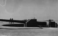 PICTURE: 203/45 C coastal gun in its original configuration. Notice low gun mount and recoil spring system that is not visible