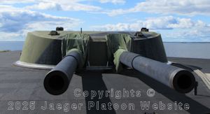 - 4 x 305/52 O gun as single guns in barbette-type open positions.