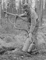 PICTURE: Captured flame-thrower M/41-R in use of Finnish sappers in training centre of