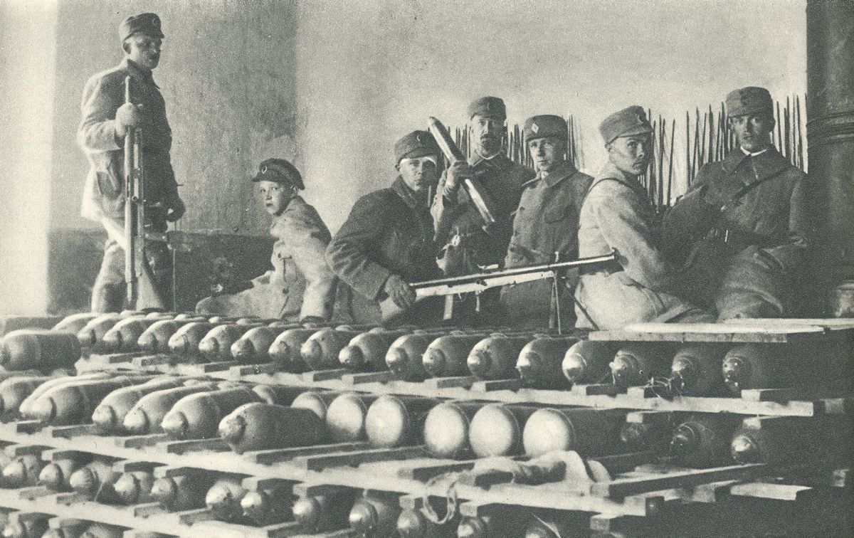 caption the soldiers are posing with captured weapons. (Scanned from book Vapaussota kuvissa published year 1934. Public