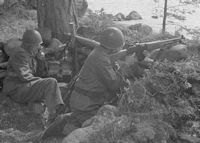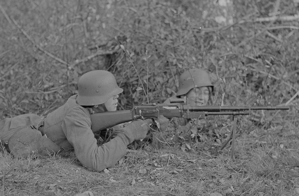PICTURE: Finnish machine gunner and his assistant with FN D light machine gun. The