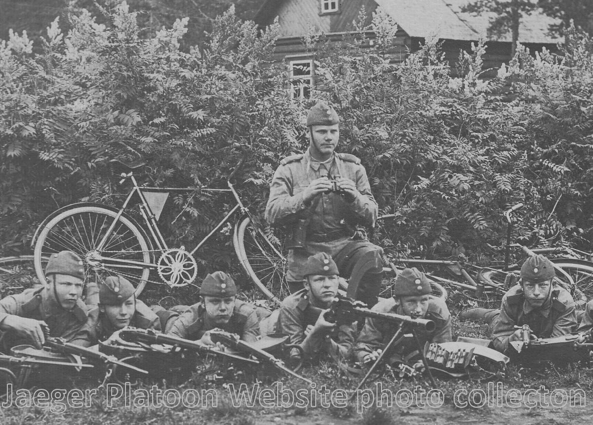 PICTURE: Finnish Army bicycle troops being trained in use of Madsen light machine guns. The tunics and