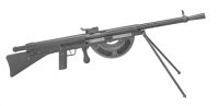 PICTURE: Madsen M/20 light machine gun. Notice bipod folded under the barrel, large cone-shaped flash