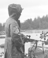 PICTURE: Finnish soldier, according original photo caption a beach sentry, with Belgian FN D