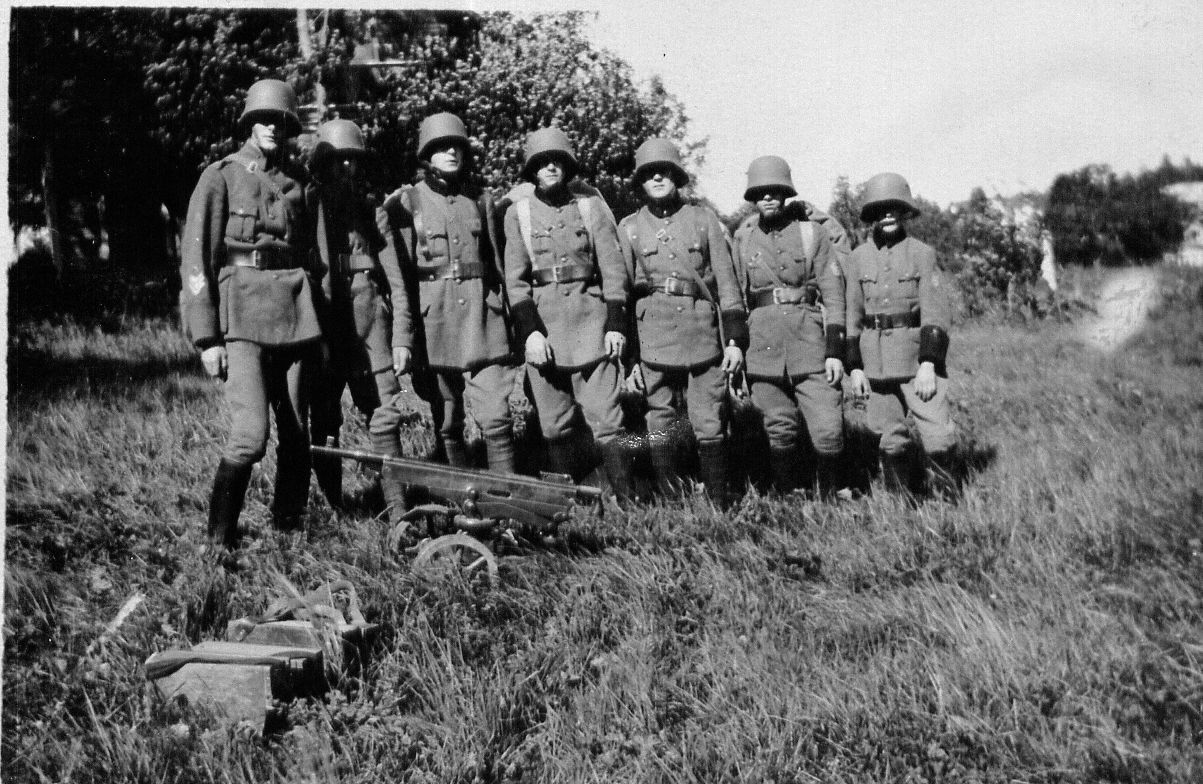 machine guns and another on Sokolov mount. Several of the men appear to be wearing Finnish White Army