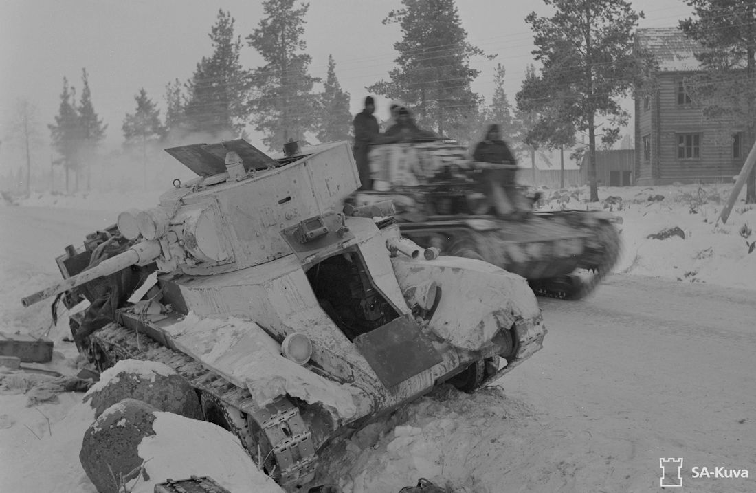 During Finnish - Soviet Winter War (November 1939 - March 1940) Soviet Red Army used BT-2, BT-5 and BT-7 tanks in very large numbers in front north of Lake Laatokka / Ladoga. In huge snow-covered forests of that area they proved rather unsuccessful mainly due to their poor terrain mobility. While the Soviets had somewhat increased armour protection of these tanks during development, with their thin armour they were still easy pray for small number of antitank-guns and antitank-rifles, which Finnish troops had in their use. During Winter War in this area Finnish Army pocketed whole divisions of Red Army units into several motti (pockets). Ultimately the pocketed Red Army units started running out of fuel and spare-parts and were usually forced to turn their tanks as improvised pillboxes by digging them into turret down positions. This was the condition in which Finnish troops destroying Soviet troops one motti after another captured these tanks. But even if Finnish troops captured large number of BT-tanks in area north of Lake Laatokka / Ladoga at that time, they were not able to salvage these tanks, since they were lacking proper towing vehicles capable towing off tanks this heavy. One could also note that the condition in which most of the tanks were captured likely increased the difficulty of salvaging them. Soon running out of fuel encircled Soviet units commonly dug their tanks turret deep and used them as improvised pillboxes. Attacking these encircled Soviet units Finnish troops typically knocked out dug in tanks with Molotov cocktails and satchel charges - which tended to make much more damage than antitank-guns or antitank-rifles. Hence much of the tanks captured from numerous motti were basically burned or blown up hulks, which had been dug on frozen ground - far from ideal starting point for salvage operation. Hence only guns and other useful tank parts were evacuated and after Winter War Finnish Army still did not have any complete BT-series tank in its inventory.