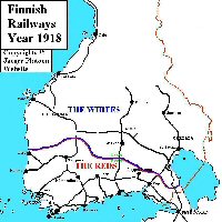 Like elsewhere the first thing concerning railroads that the Whites did was destroying of selected railroad-bridges to stop possible troop transport trains of Russian Army. In this case they exploded two railway-bridges north of Kouvola (the railway crossroads station of Savo railway and Helsinki – Petrograd railway). Three armed trains White Army used early on in this railway were small, very lightly armed and failed to make a difference, while the armed trains equipped by the Reds locally and the one which arrived with Latvians from Russia proved quite a difficult opponents to the Whites. However effectiveness of the "proper" Fredriksberg-build armoured train that the Reds got in beginning of March turned out be rather disappointing after its first success. After early success attacks of the Reds turned out to be like trying to get through stonewall by hitting it with head repeatedly - painful and bloody but with very little success. The frontline then calmed down and did not move until the Reds decided to retreat in late April because their retreats in other fronts had created dangerous situation also in this front.